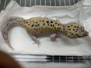 今日のヒョウモントカゲモドキさんは男の子ですが、繁殖のためにハッスルし過ぎて(汗)、 ペニスが元に戻らなくなりました(^_^;)