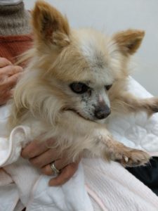19歳のハンゾウちゃん。 目も耳もダメになりました。 当院の三本の指に入るお年寄りです。 今日は他ごとのついでに遊びに来てくれました。